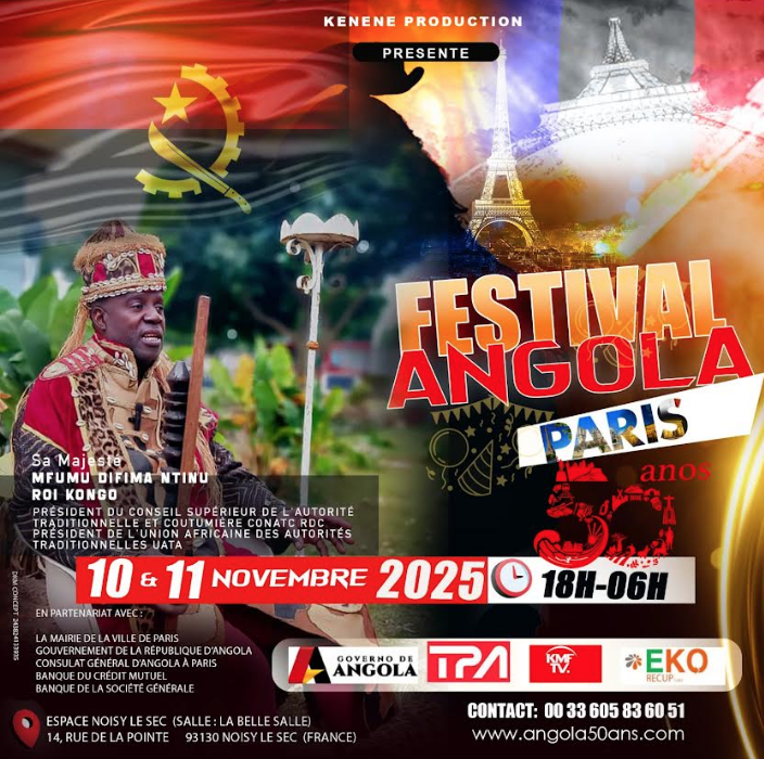 Célébration du 50e Anniversaire de l’Indépendance de la République d’Angola à Paris. À l’invitation de Kenene Ministries et les autorités angolaises, en partenariat avec le Gouvernement de la République d’Angola, le Consulat Général d’Angola à Paris, ainsi que la Mairie de la Ville de Paris, Sa Majesté prendra part à cet événement solennel pour honorer le parcours de libération, de résilience et de souveraineté du peuple angolais. Son intervention en tant qu’invité d’honneur portera sur la place des autorités traditionnelles dans les processus d’émancipation et de paix en Afrique.